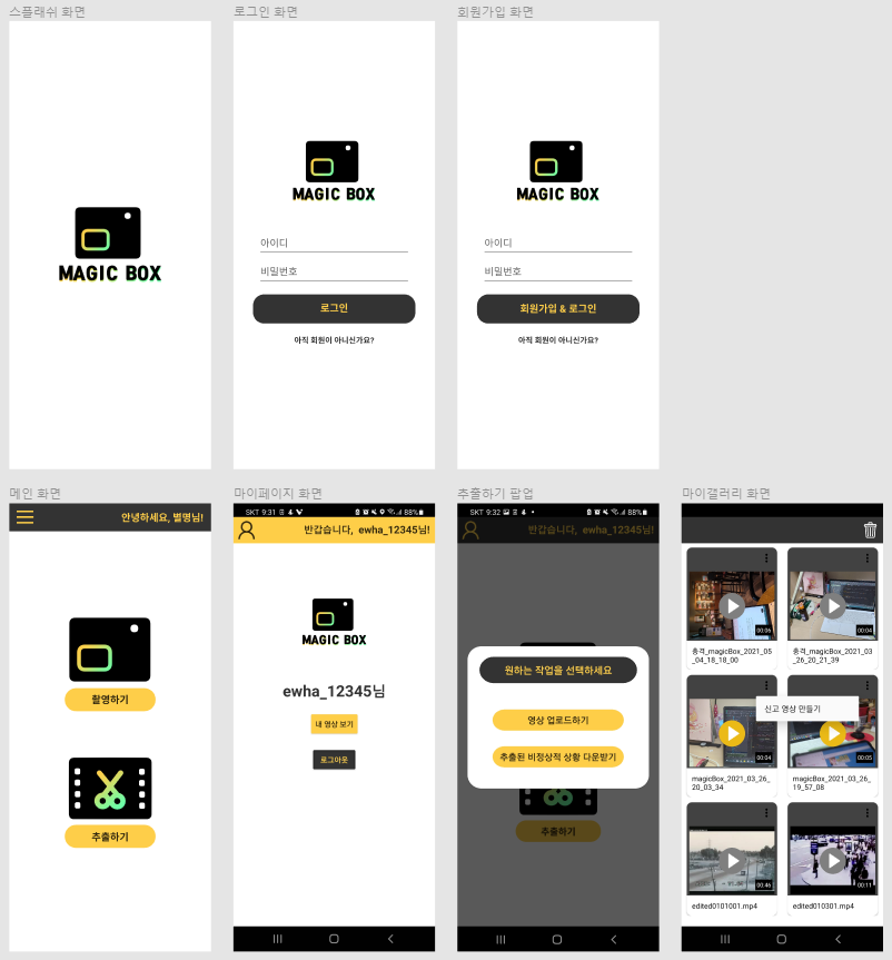 일단 졸업프로젝트 주제를 설명하자면, 본 어플리케이션은 abnormal detection이란 딥러닝 모델을 통해 사용자가 업로드하는 블랙박스 영상에서 비정상적인 순간을 찾아 클립으로 제공하는 서비스이다! 블랙박스를 본인 차사고 단서를 잡기위해서도 자주 사용하지만, 범죄 발생시 수사용으로도 공공기관에서 자주 사용하는 모습들을 봐왔다. 그런데 블랙박스는 차사고만을 취급하기때문에 범죄에 대한 단서를 찾을시에는 일일이 찾아봐야해서 시간손실이 컸다. 그래서 우리 어플리케이션은 폭력, 폭발, 강도 등등의 범죄의 순간도 구별해내서 해당 순간을 클립으로 제공해준다. 다만 일개 일반인 사용자에겐 이런 공적인 장점이 크게 와닿지 않으므로 비싼돈주고 블랙박스를 살리가 없다. 그래서 우리는 이름 무료 핸드폰 어플리케이션으로 제작하였다. 그저 다운받고 핸드폰을 자동차에 거치하면 끝!