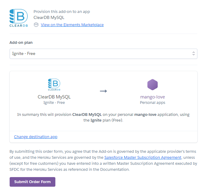 - Heroku에 연결할 수 있는 애드온들이 굉장히 많은데, 그중에 무료 DB 호스팅 애드온도 있다. ClearDB인데, 제약사항이 존재하지만, 절대로 내가 원하지않는데 과금이 되지 않기때문에 유용하다고 느꼈다.