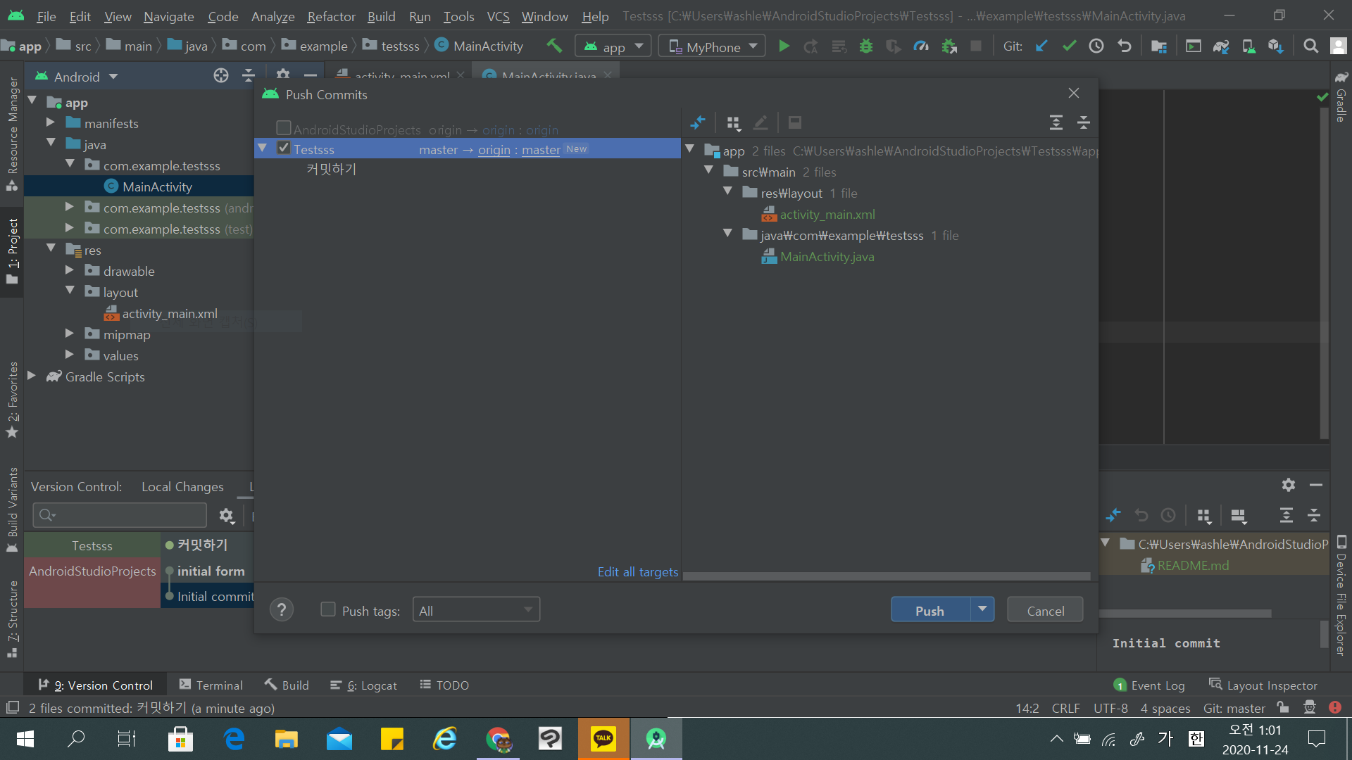 그 후에 왼쪽 파일들을 git에다가 add해주고, commit및push를 해준다!