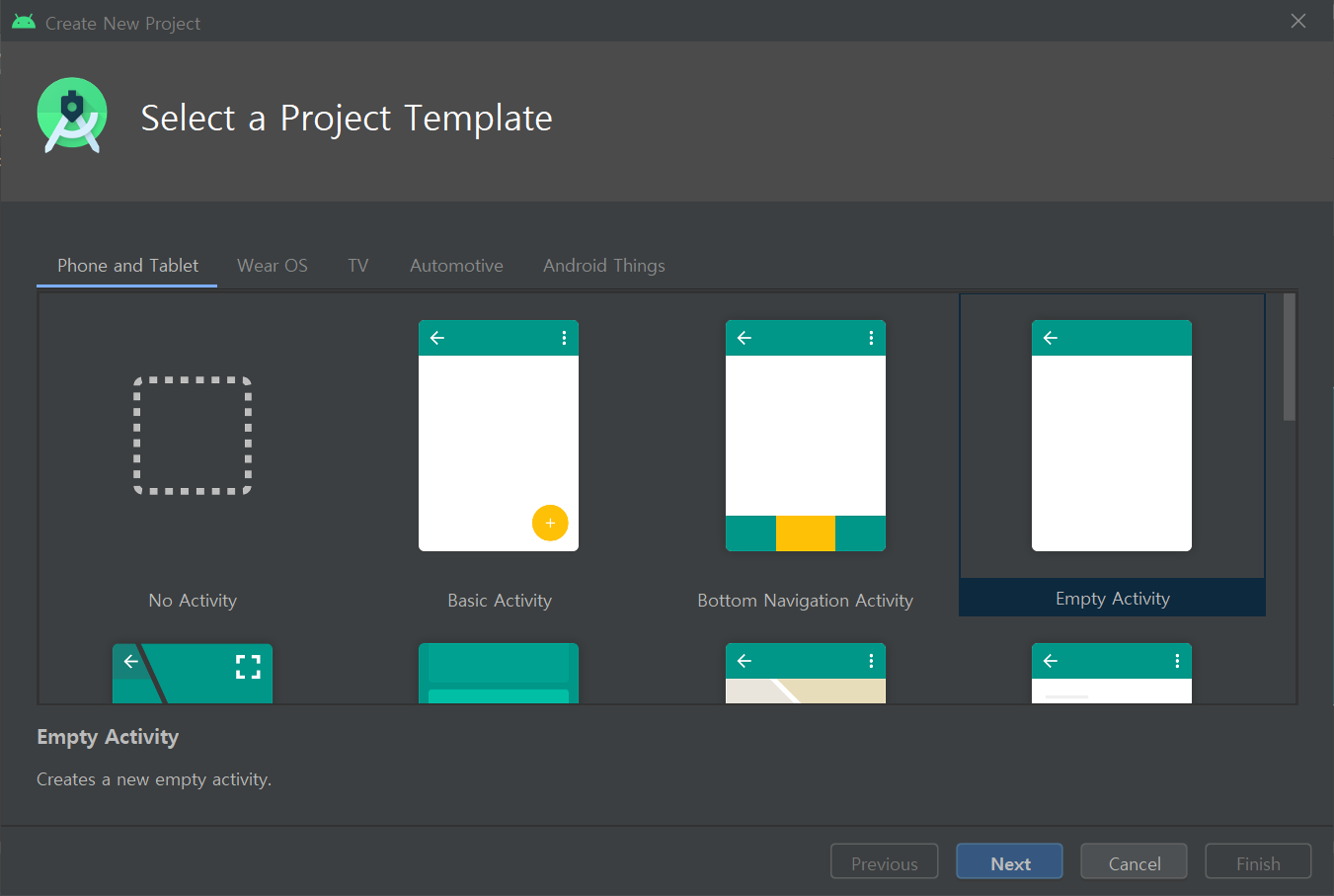 2. 왠만하면 empty activity를 선택하는 경우가 많다.