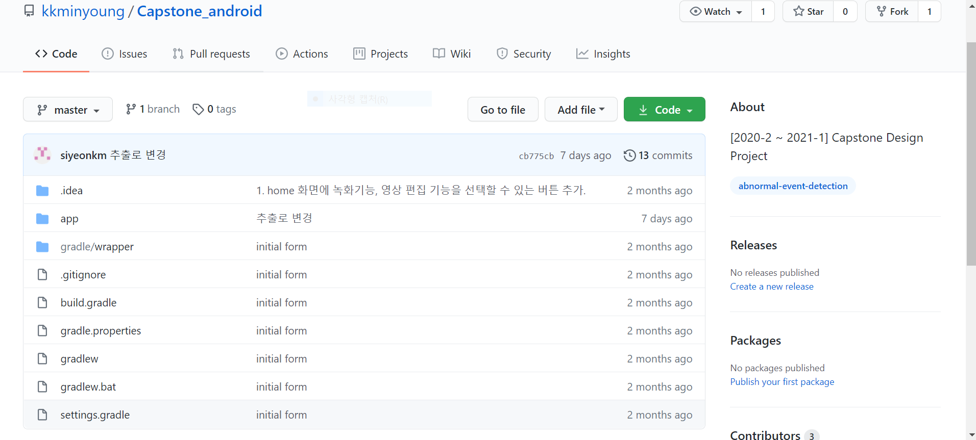 예시로 현재 졸업프로젝트 깃허브를 보여주자면 이와같다.